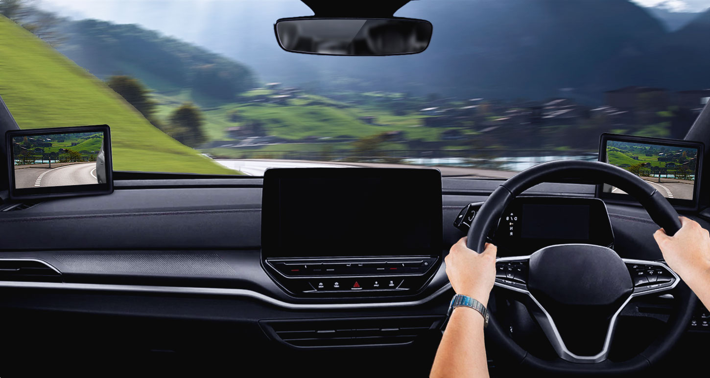 Monitor digital de espejo retrovisor El sistema está compuesto por cámara exterior y monitores interiores. En comparación con el espejo de puerta convencional, la cámara de 1080 60 fps proporciona una visión trasera más amplia y clara que transmite imágenes en tiempo real a los monitores dentro del vehículo. Incluso en malas condiciones de conducción de lluvia, niebla y noche, la cámara impermeable y a prueba de niebla aún puede transmitir de manera estable alta- Imágenes de definición, lo que reduce en gran medida el punto ciego de los espejos exteriores convencionales y le brinda al conductor una vista trasera mucho más clara. Este es un sistema de alta tecnología de tendencia que es indispensable para su seguridad al conducir.
